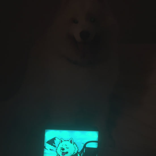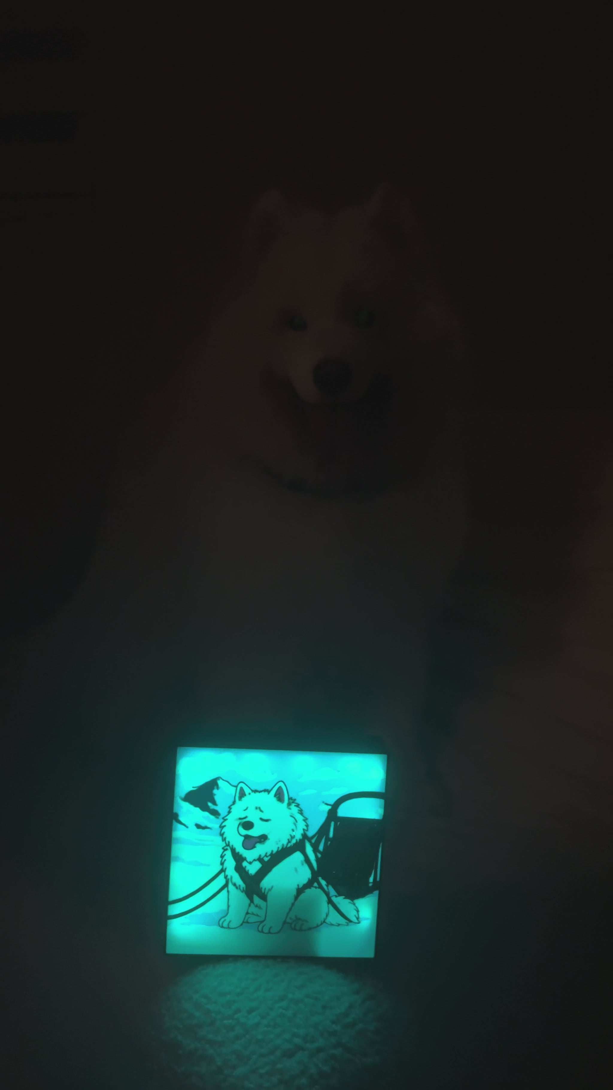 Experience the thrill of Arctic exploration with this captivating LED lightbox featuring a noble Samoyed ready for winter adventure!